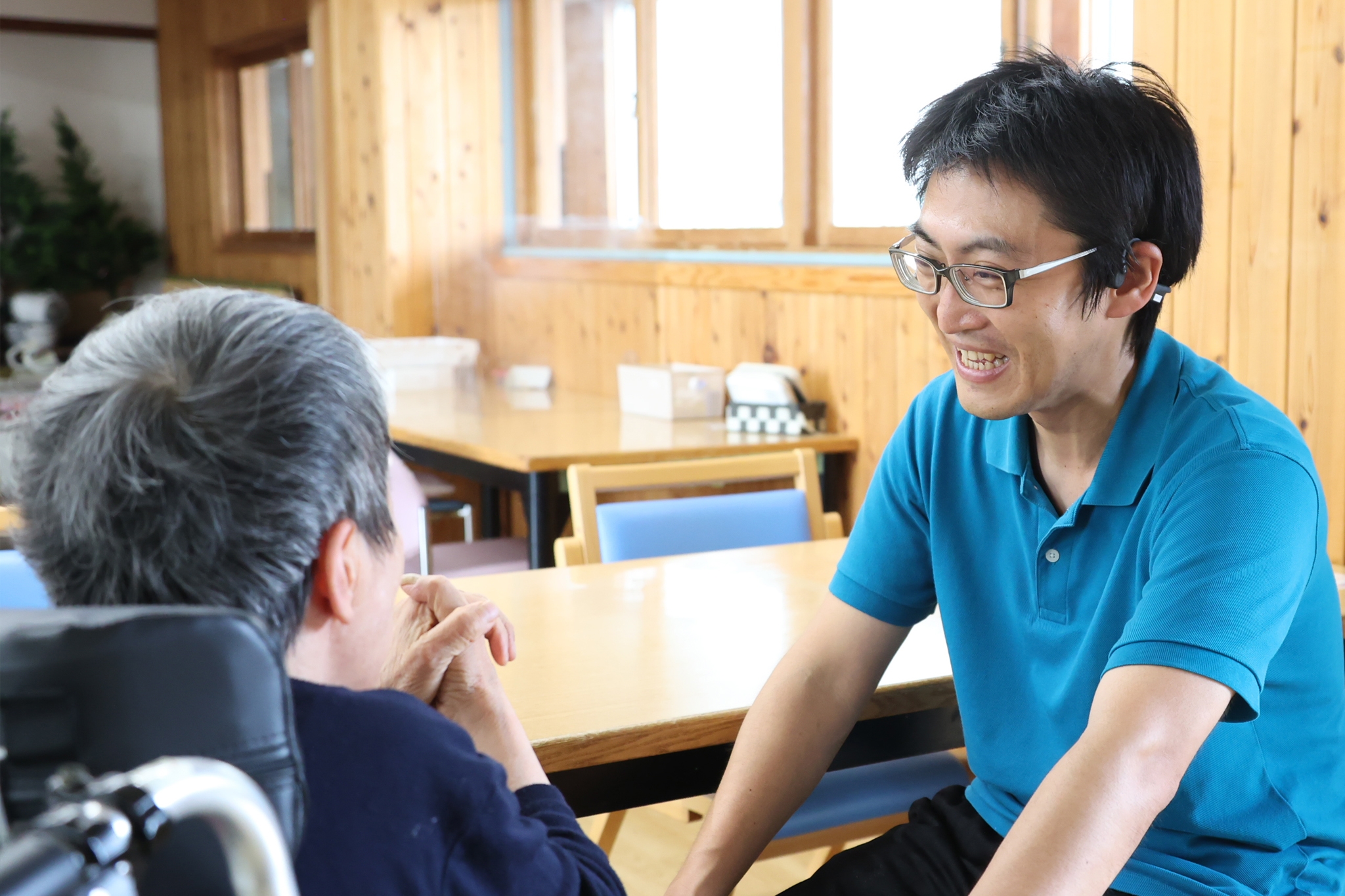 やはり利用者さんたちの笑顔を間近で見られる事が、やりがいの一つだと思います。一緒に散歩をしたり、食事を摂ってもらったり、お風呂で身体を洗わせてもらったりする中で、笑顔が見られること。生活の中で幸せを感じているであろう時に、そのそばにいられるのは快感だと思います。また、同じ職場のメンバーとともに利用者さんへの支援を考え、共に同じ考えを持って行動し、お互いに支え合える環境もありがたいと思います。一人では大変なことも、同じ意識を持つ仲間とともに過ごせることは、何よりもやりがいに繋がると思っています。